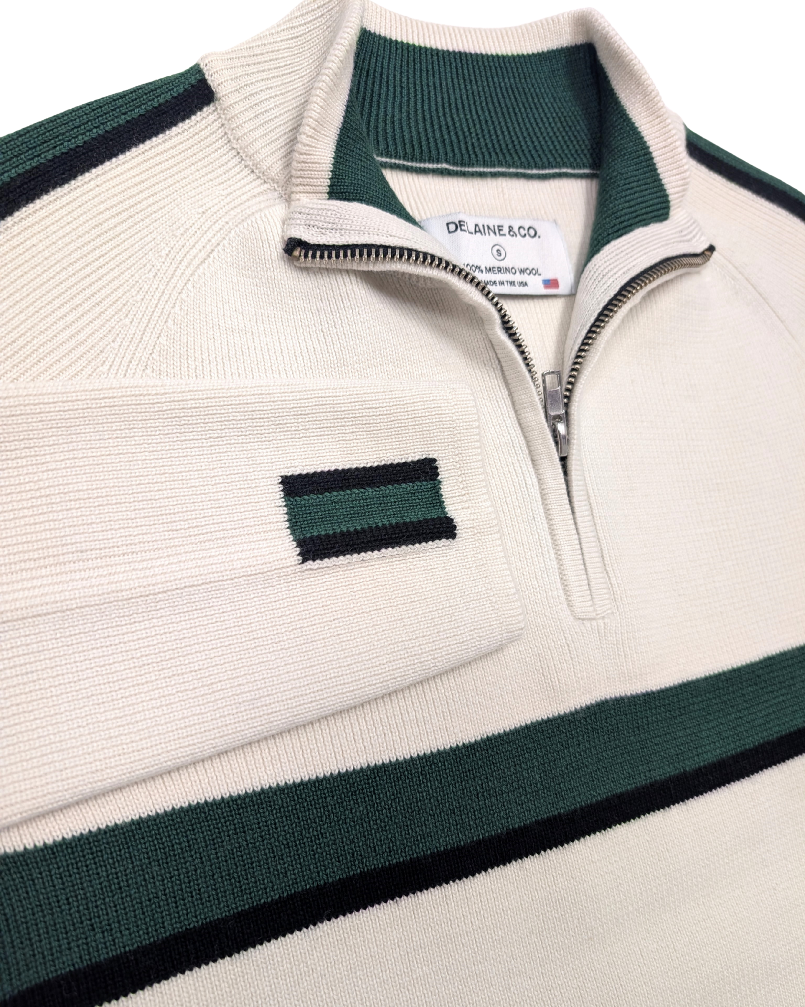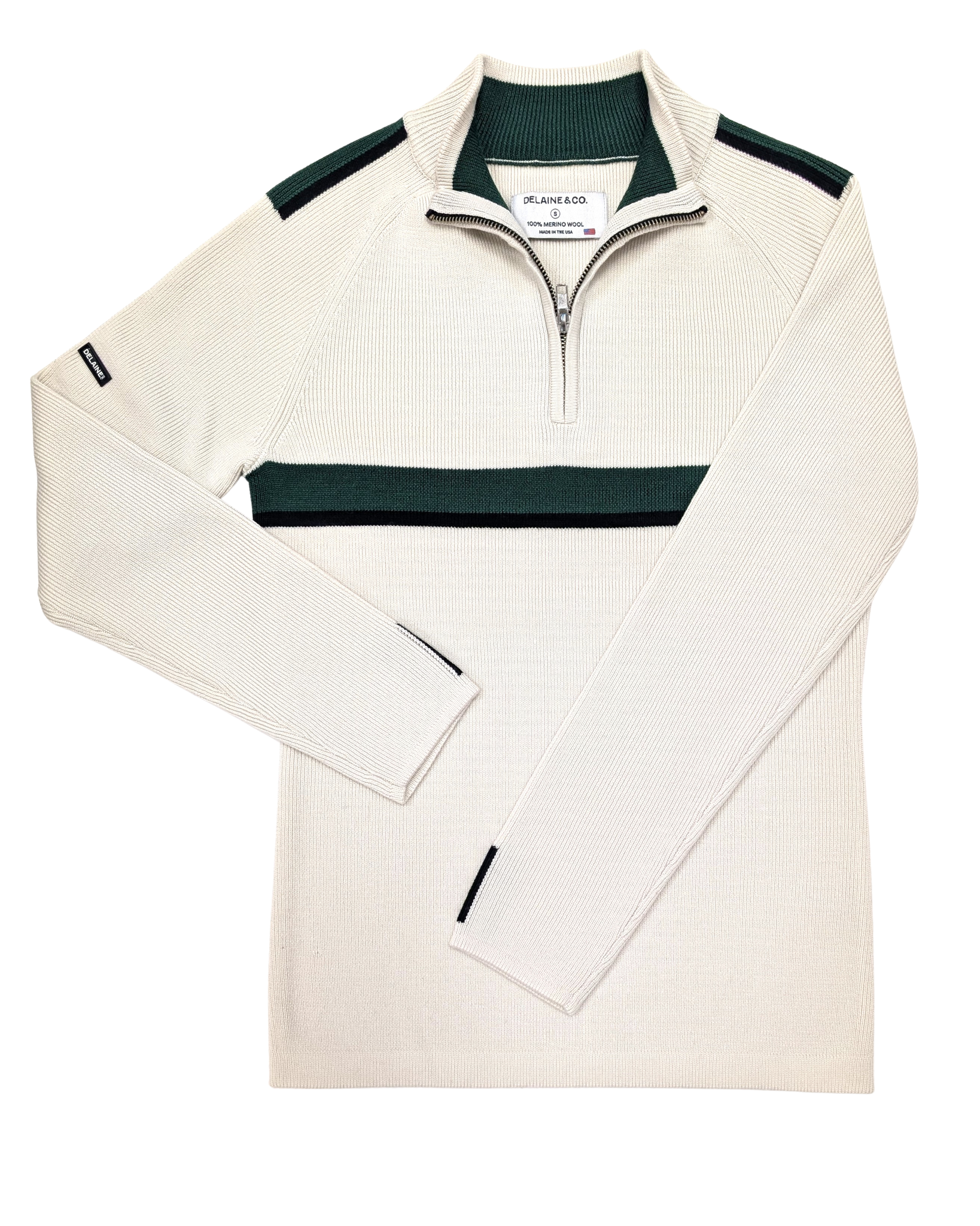 Loved the look of the Dartmouth ski sweater but not an alum? Here’s your chance to own the style without the Dartmouth snowflake logo.  Crafted in natural ivory with refined contrast accents, it blends classic ski heritage with modern comfort.  Designed with raglan sleeves for easy movement and detailed shoulder and cuff accents for visual punch, it’s perfect for skiing, après-ski gatherings, or relaxed winter weekends.